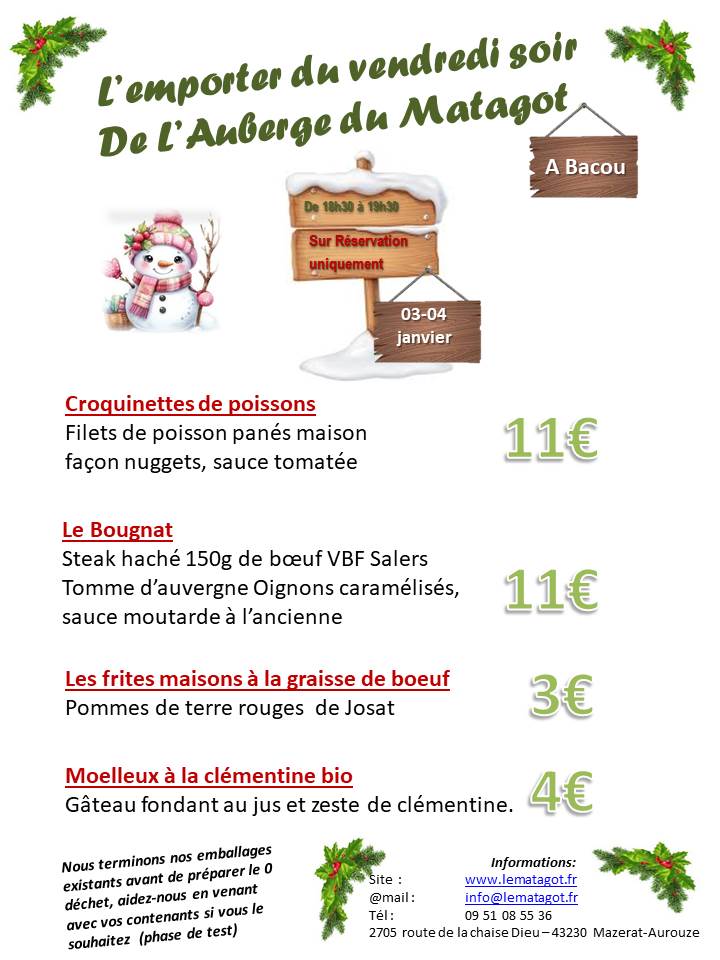 * Sur réservation avant 17h00 en hiver (dès 6 personnes)